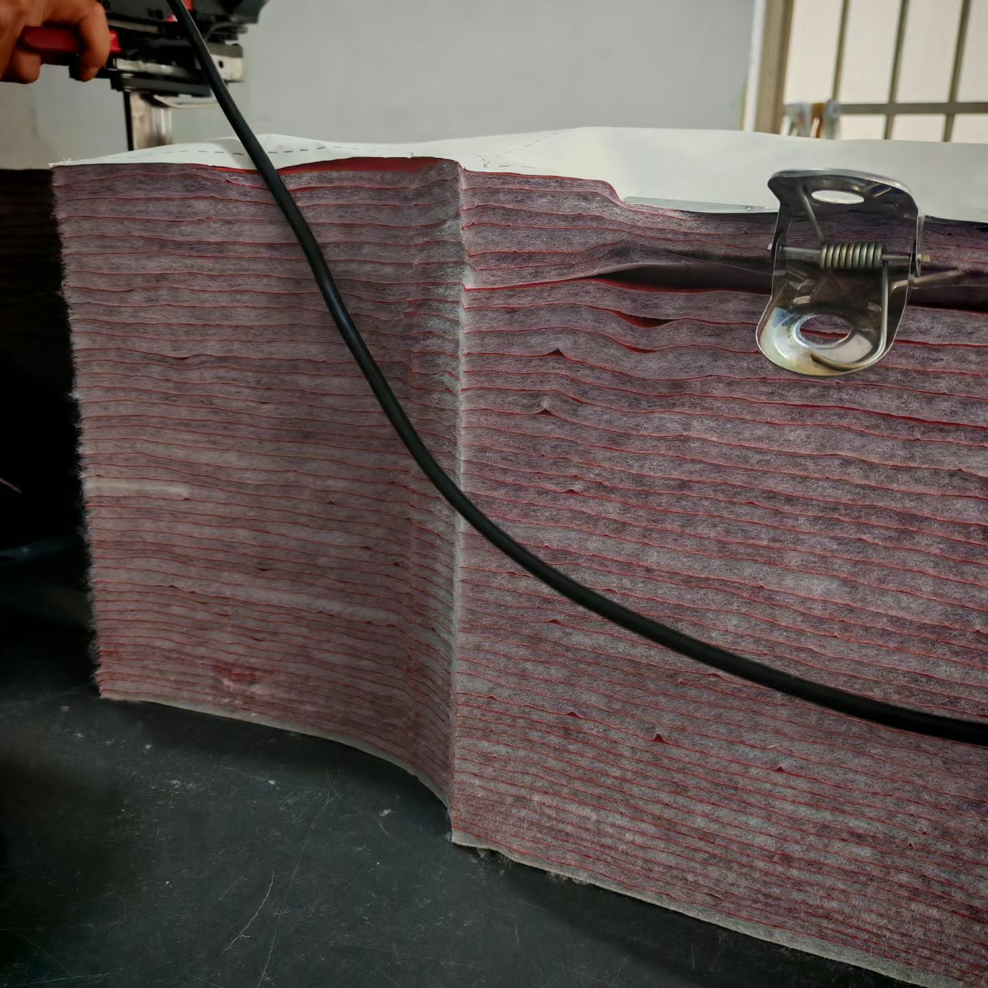 磨光特细砂带,适用于法兰绒、长毛绒、短毛绒棉花等面料裁剪,磨光砂带的核心性能大大幅度解决了磨刀后裁布仍存在勾丝、毛边、裁布效果不理想,从而影响面料成品质量,导致生产效率降低的裁布行业痛点。